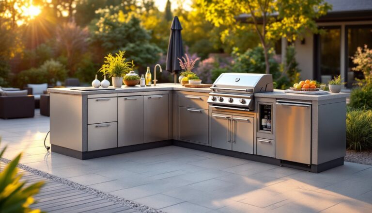 An L-shaped layout gives you the efficiency of a real kitchen without the footprint. Two perpendicular counters, smart appliance placement, and durable materials create a space you’ll actually cook in and enjoy. Start by measuring your yard, sketching your layout, and being honest about budget. Order quality cabinetry and a mid-range grill, these are your workhorses and worth the investment. Plan utilities and drainage early, and don’t skip prep work or permits if your area requires them. The payoff is a functional outdoor kitchen that becomes the heart of summer entertaining and adds genuine value to your home.