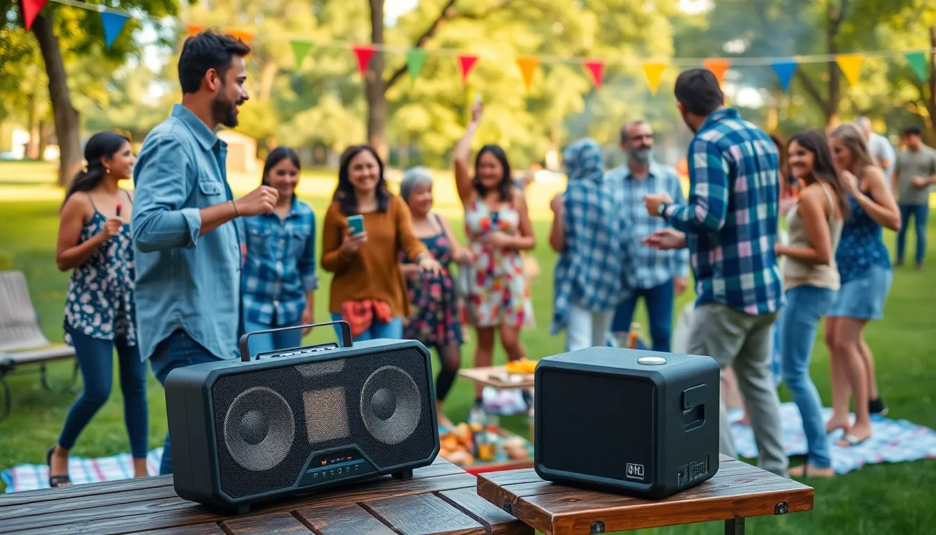 Bluetooth speakers provide versatility and ease of use, perfect for casual gatherings. They connect to smartphones or tablets, allowing users to play music directly from their devices. Compact and lightweight, these speakers are often portable, offering options for different sizes and sound outputs. Most models include built-in batteries that last several hours, ensuring uninterrupted audio enjoyment outdoors.
